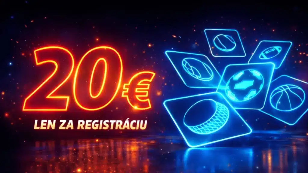 - Free bet spolu 20 €: 10 € po overení + 10 € po vklade min. 20 € (do 7 dní).